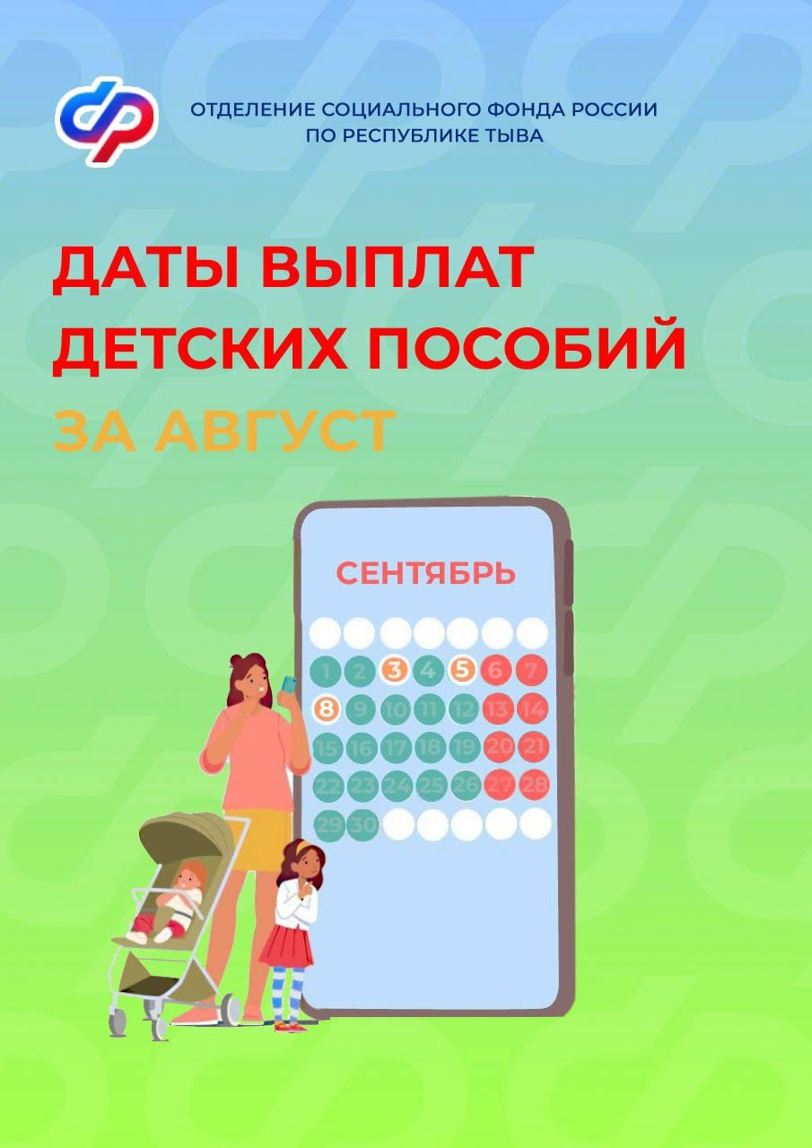 Отделение СФР по Республике Тыва публикует график выплаты детских пособий за август: