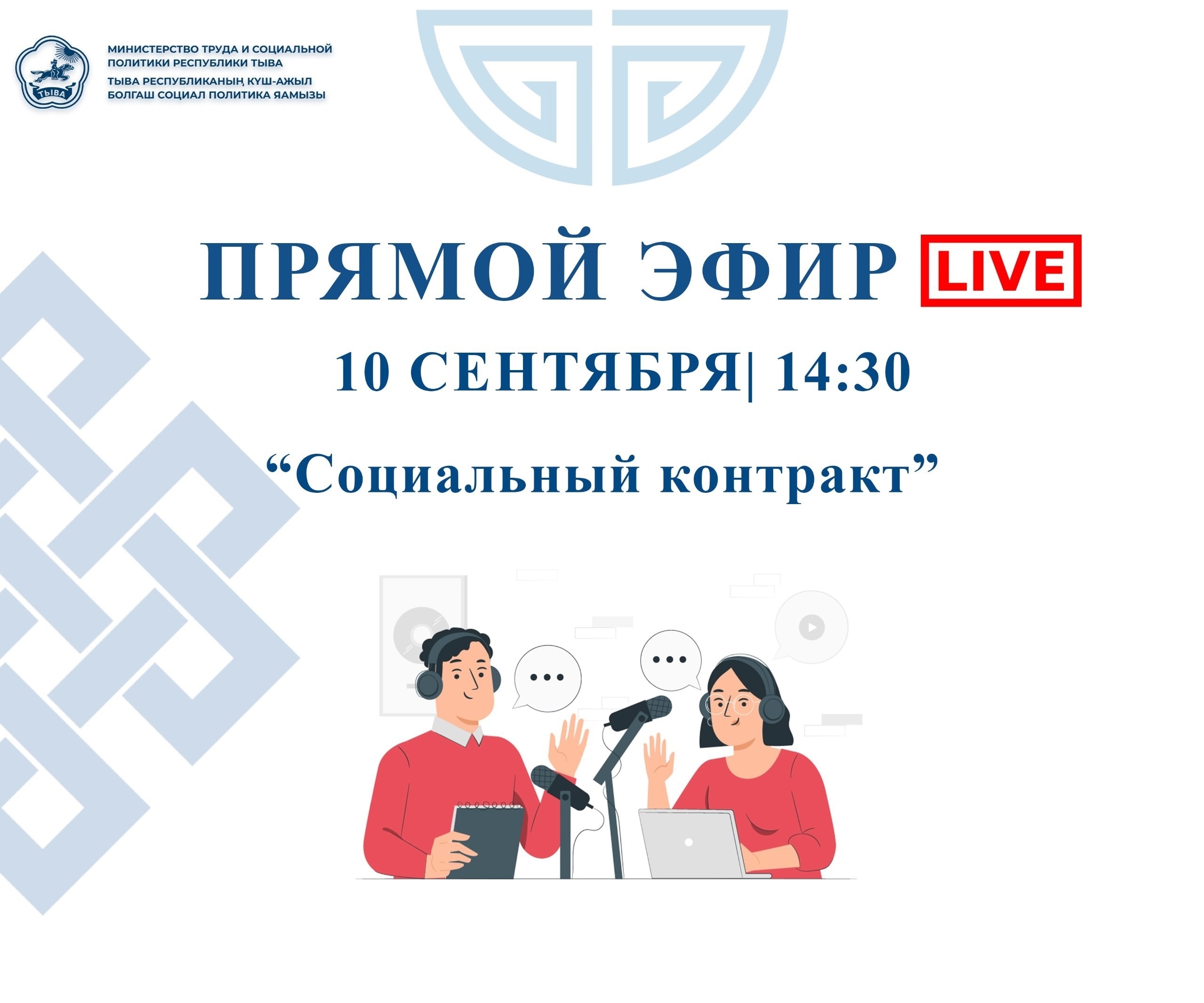 10 сентября 2025 г. в 14:30 часов по местному времени начальник отдела содействия занятости населения Министерства труда и социальной политики Республики Тыва Чечек Артна и директор Государственного казенного учреждения Республики Тыва «Центр занятости населения Республики Тыва» Айлана Бюрбю проведут прямой эфир с жителями региона на тему «Социальный контракт».