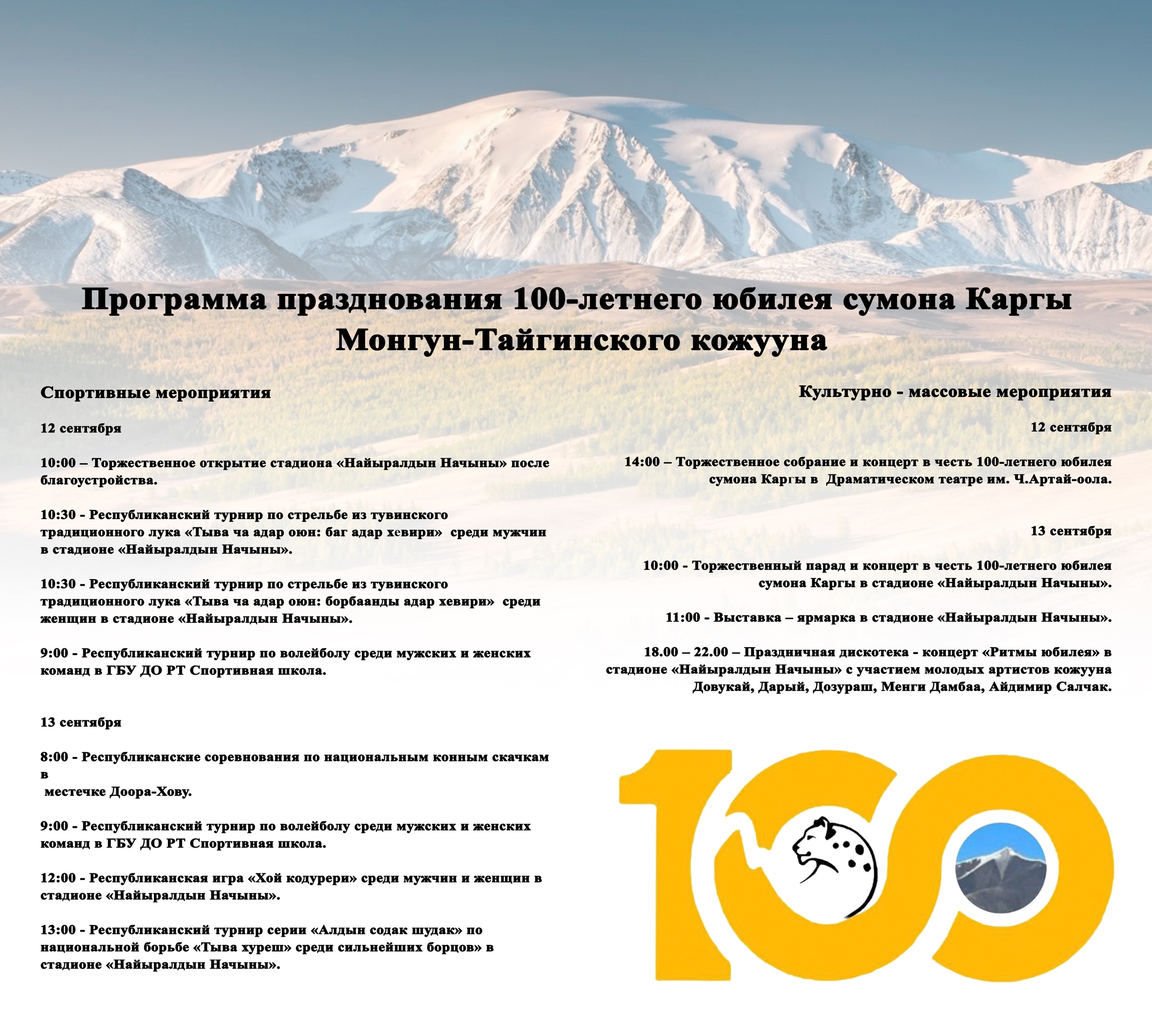 12–13 сентября 2025 года в живописном Мугур-Аксы (Монгун-Тайгинский район) состоится грандиозное празднование 100-летия сумона Каргы!