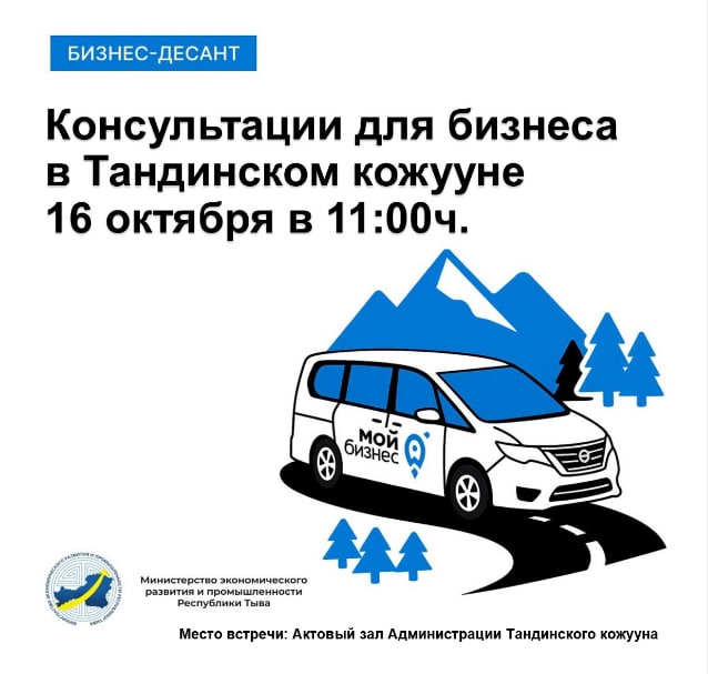 16 октября специалисты Минэкономразвития РТ, Роспотребнадзора, УФНС и институтов поддержки бизнеса приедут в наш кожуун.