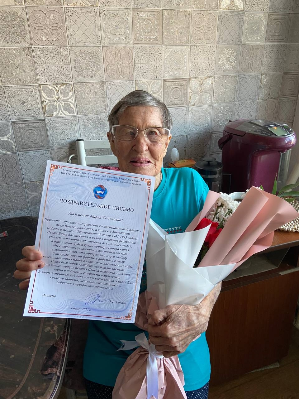 Вчера свой день рождение отметила труженик тыла - Мария Семеновна! От всей души поздравляем Вас с этим замечательным праздником! 15 октября – особенный день, ведь именно в этот день много лет назад родилась удивительная женщина, чья жизнь является примером стойкости, трудолюбия и преданности своей семье и родине. Мария Семеновна из многодетной семьи, отец её работал на железной дороге, мать — в колхозе. Детство и юность прошли в селе Чулок Воронежской области, где она окончила 4 класса. В Туву приехала вслед за сестрой в годы становления ТНР, да так и осталась здесь. Трудовую деятельность начала в СПТУ уборщицей. Трудилась на простых рабочих должностях, на заслуженный отдых вышла в 1991 году. Воспитала двоих детей. Сын был ветераном боевых действий в Афганистане. Мария Семёновна — ветеран труда, у неё двое внуков и двое правнуков. В Департаменте социальной политики Мэрии г.Кызыла состоит по категории «труженик тыла » и пользуется мерами социальной поддержки. Желаем Вам крепкого здоровья, долгих лет жизни, тепла и внимания близких! Пусть каждый день приносит Вам только радость и положительные эмоции! С днем рождения!