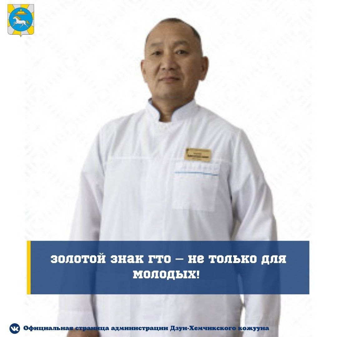 Врач-хирург Дзун-Хемчикской ММЦ Хуреш Болат-оол выполнил нормативы и получил золотой знак отличия ГТО в возрастной категории 60+ лет