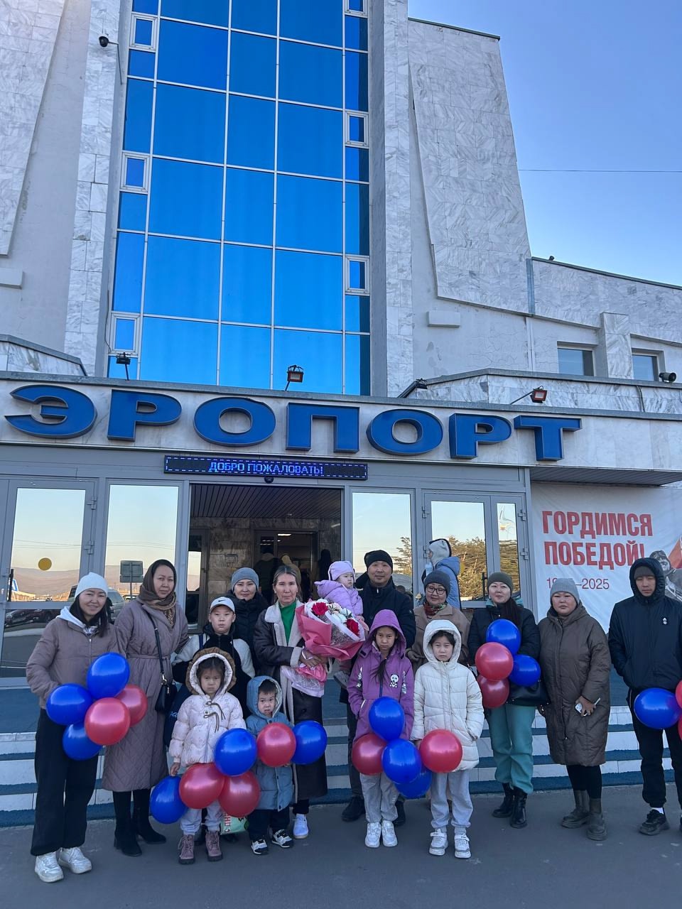 Сегодня в аэропорту Кызыла царила атмосфера радости и гордости! Сотрудники Министерства труда и социальной политики Республики Тыва во главе с первым заместителем министра Сылдыс Ондар торжественно встретили семью Ондар Айнааш Владимировны и её прекрасных