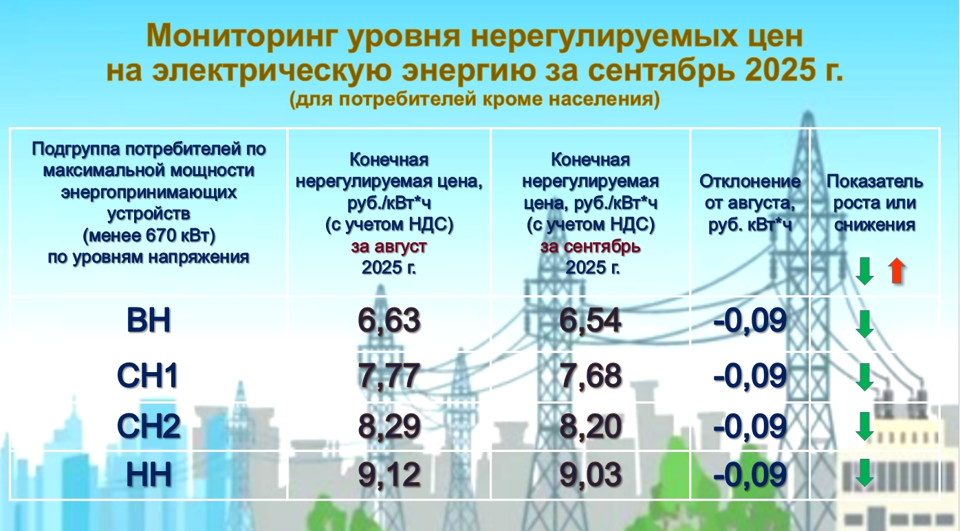 Мониторинг нерегулируемых цен на электрическую энергию для прочих потребителей за сентябрь 2025 г.
