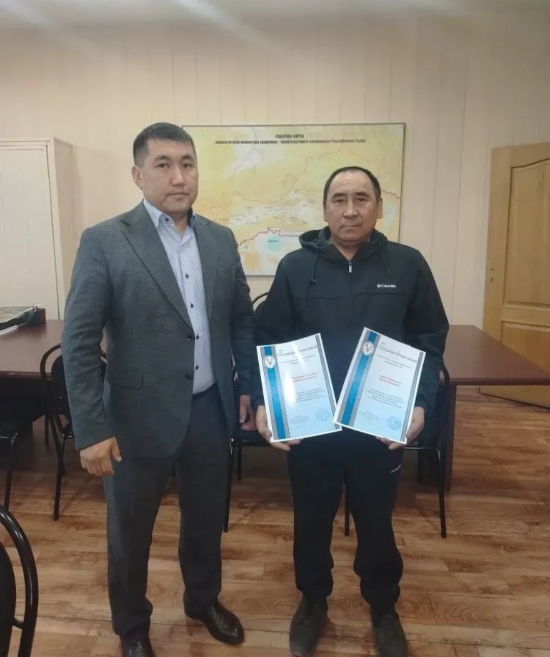 Заместитель министра дорожно-транспортного комплекса Республики Тыва Шолбан Лакпажаплично вручил некоторым водителям благодарственные письма, подчеркнув значимость их труда и вклад в обеспечение транспортной доступности региона. В своей речи Шолбан Лакпажап выразил надежду на дальнейшее успешное сотрудничество и пожелал коллективу успехов в работе.