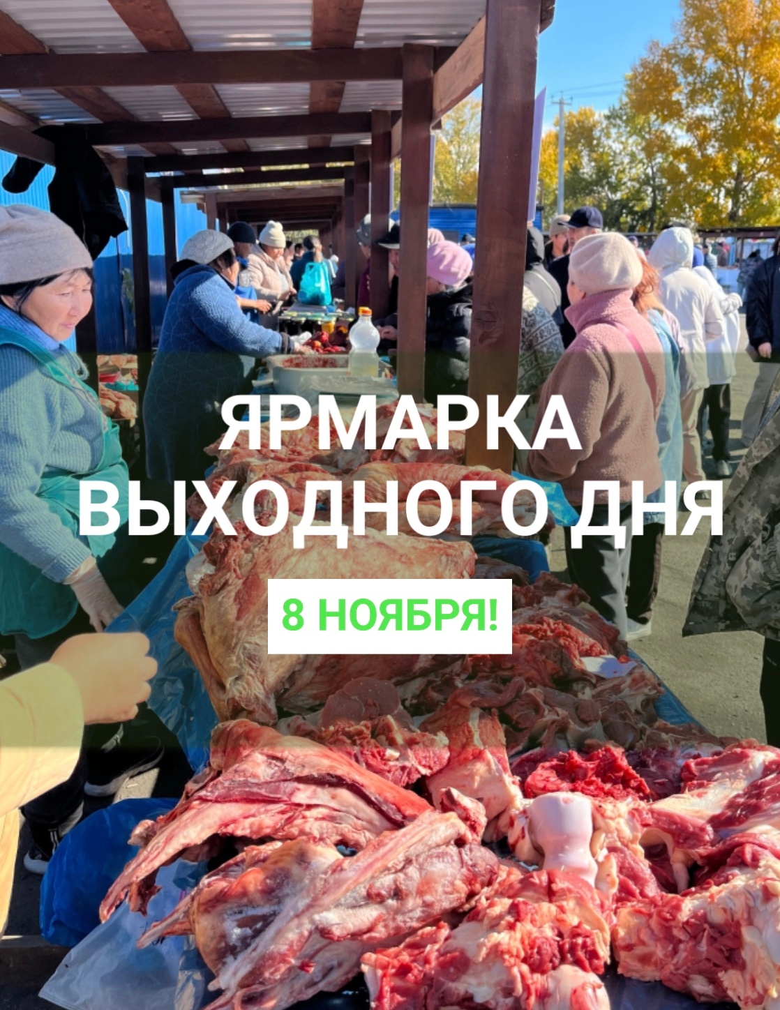 Министерство сельского хозяйства и продовольствия Республики Тыва 5 ноя 2025 В эту субботу (8 ноября) вас ждёт очередная ЯРМАРКА ВЫХОДНОГО ДНЯ! Это возможность закупиться свежей натуральной продукцией по низким ценам и подготовить запасы на зиму! Мясная продукция, домашние молочные продукты—будут привезены сельхозпроизводителями из Пий-Хемского, Кызылского кожууна и г