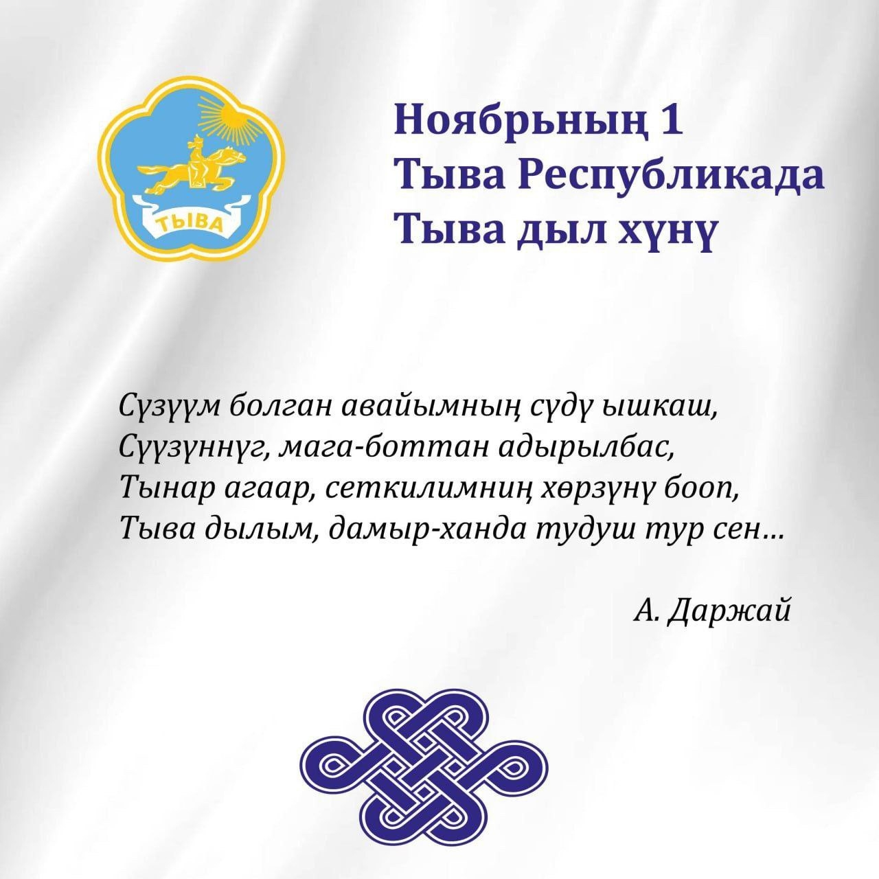 Администрация Тоджинского кожууна 1 ноя 2025 Хүндүлүг чаңгыс чер чуртугларывыс! Силерни бүгүдеге Тыва дыл хүнү-биле байыр чедирерин чөпшээреп көрүңер! Дыл – чоннуң бот-тускайлаң, онзагай чоруунуң үндезини, кол демдээ болгаш сагыш-сеткилиниң илередикчизи